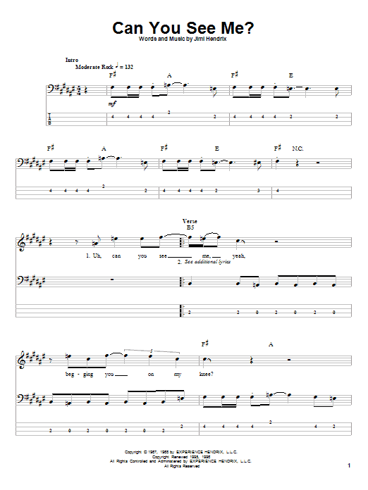 Download or print Jimi Hendrix Can You See Me sheet music, chords and digital score arranged for Guitar Tab. This Pop score includes 8 page(s).