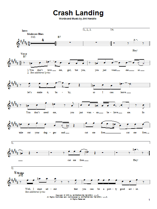 Download or print Jimi Hendrix Crash Landing sheet music, chords and digital score arranged for Guitar Tab. This Pop score includes 11 page(s).