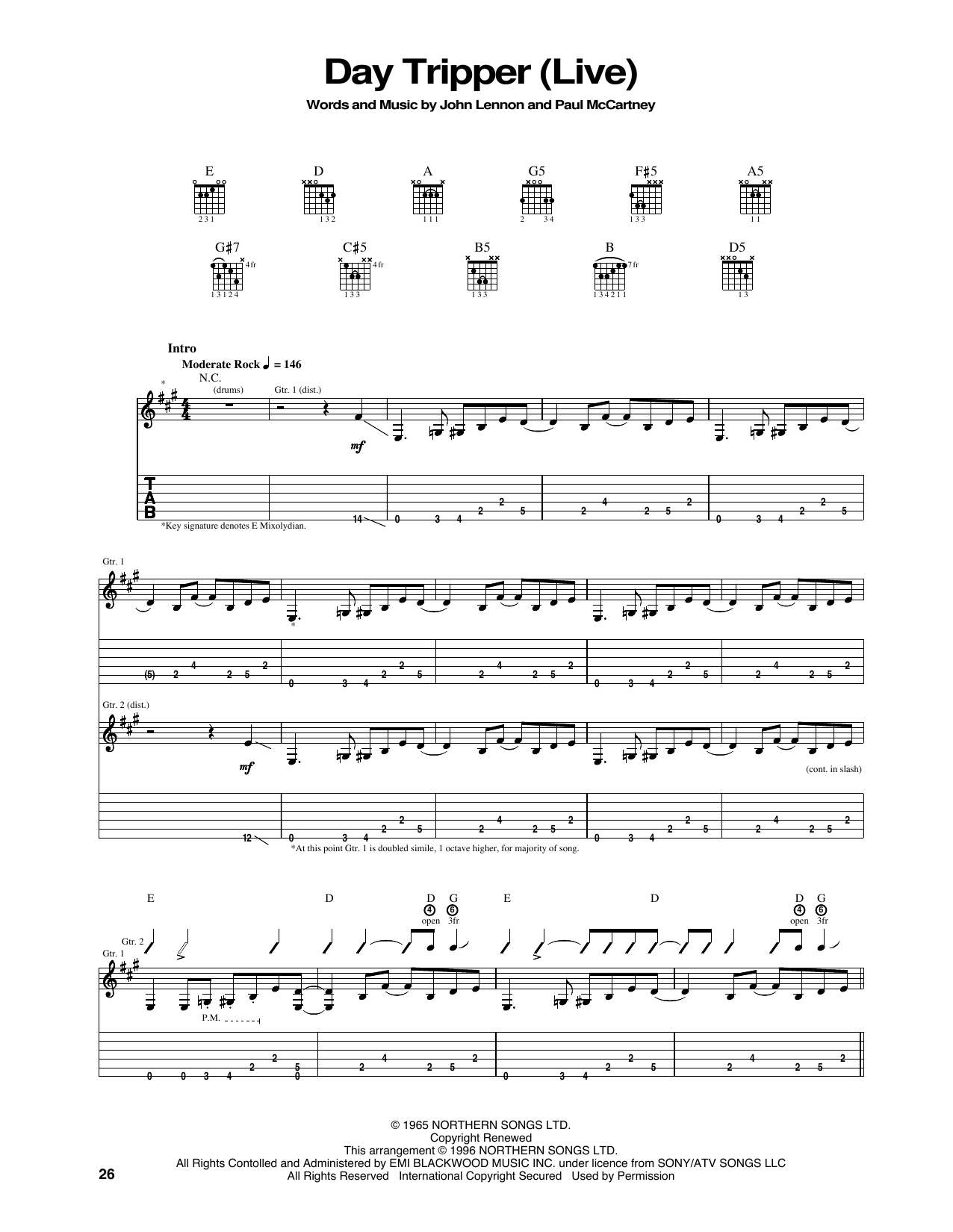 Download or print Jimi Hendrix Day Tripper sheet music, chords and digital score arranged for Guitar Tab. This Pop score includes 9 page(s).