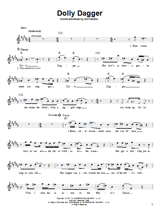 This composition is beautifuly arranged for Melody Line, Lyrics & Chords includes 3 page(s). It is performed by Jimi Hendrix. The style of the score is 'Rock'. Catalog SKU number of the notation is 25511.
