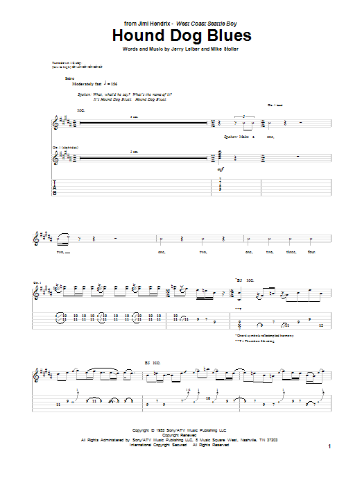 Download or print Jimi Hendrix Hound Dog Blues sheet music, chords and digital score arranged for Guitar Tab. This Blues score includes 10 page(s).