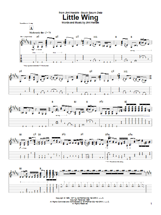 Download or print Jimi Hendrix Little Wing sheet music, chords and digital score arranged for Guitar Tab. This Pop score includes 6 page(s).