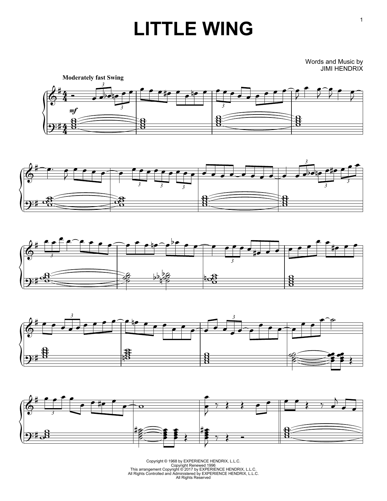 Download or print Jimi Hendrix Little Wing [Jazz version] sheet music, chords and digital score arranged for Piano Solo. This Blues score includes 3 page(s).