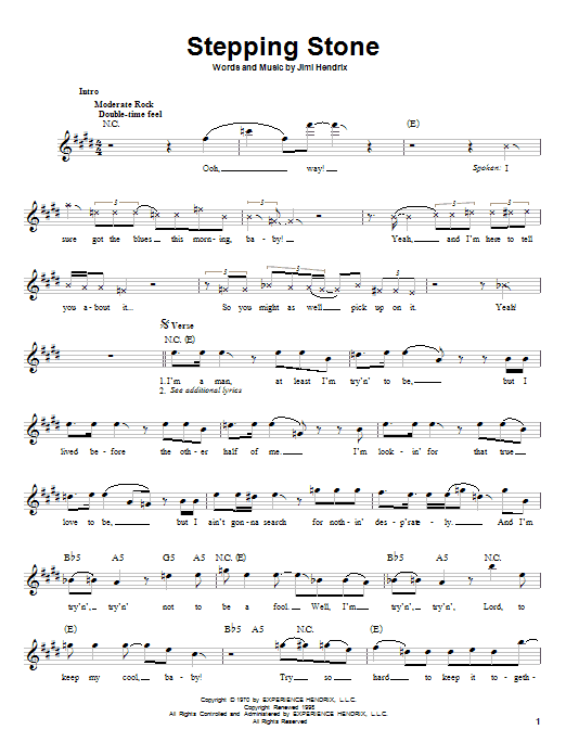 Download or print Jimi Hendrix Stepping Stone sheet music, chords and digital score arranged for Guitar Tab. This Pop score includes 26 page(s).