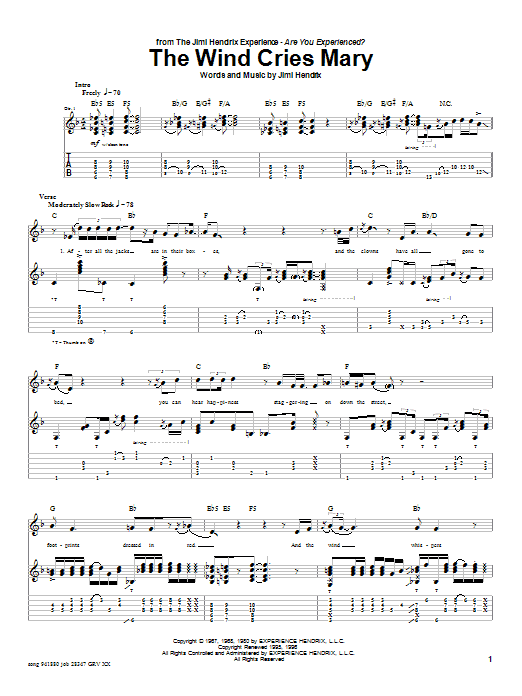 Download or print Jimi Hendrix The Wind Cries Mary sheet music, chords and digital score arranged for Guitar Tab. This Pop score includes 8 page(s).