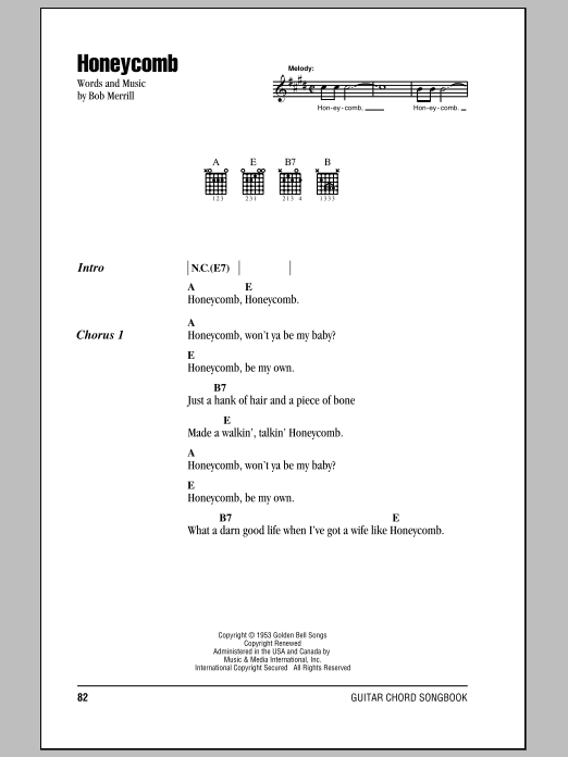 Download or print Jimmie Rodgers Honeycomb sheet music, chords and digital score arranged for Lead Sheet / Fake Book. This Country score includes 1 page(s).