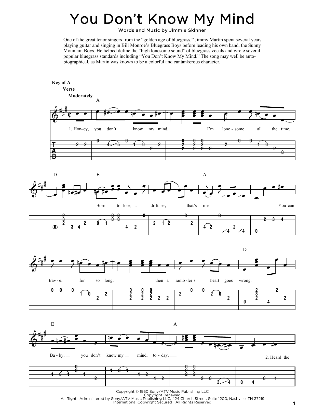 Download or print Jimmie Skinner You Don't Know My Mind (arr. Fred Sokolow) sheet music, chords and digital score arranged for Banjo Tab. This Jazz score includes 2 page(s).