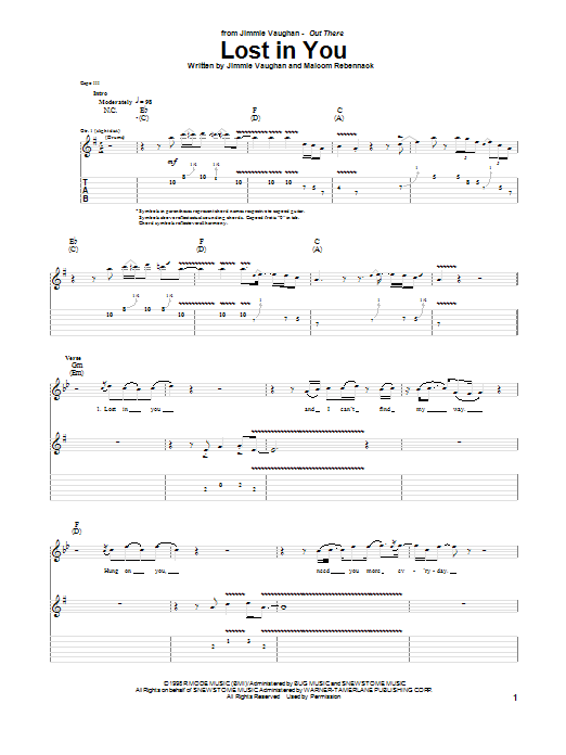 Download or print Jimmie Vaughan Lost In You sheet music, chords and digital score arranged for Guitar Tab. This Pop score includes 7 page(s).