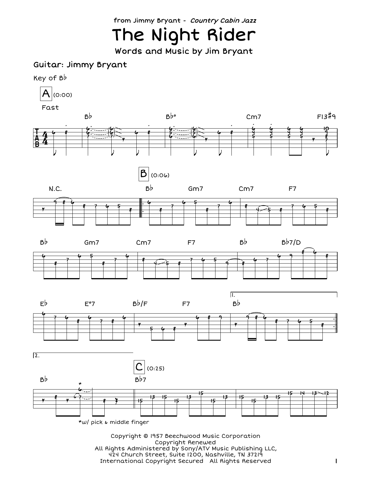 Download or print Jimmy Bryant with Speedy West The Night Rider sheet music, chords and digital score arranged for Guitar Lead Sheet. This Country score includes 4 page(s).
