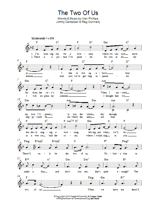 Download or print Jimmy Campbell The Two Of Us sheet music, chords and digital score arranged for Lead Sheet / Fake Book. This Standards score includes 2 page(s).