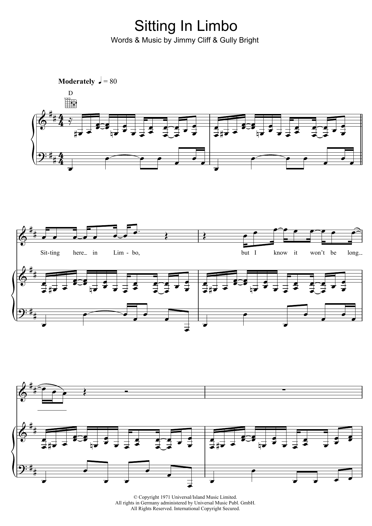 Download or print Jimmy Cliff Sitting In Limbo sheet music, chords and digital score arranged for Guitar Chords/Lyrics. This Reggae score includes 2 page(s).