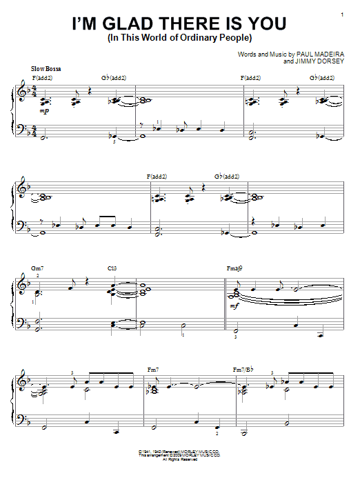 Download or print Jimmy Dorsey I'm Glad There Is You (In This World Of Ordinary People) [Jazz version] (arr. Brent Edstrom) sheet music, chords and digital score arranged for Piano Solo. This Jazz score includes 4 page(s).