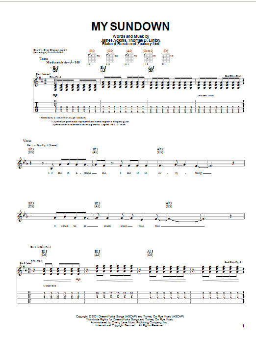 Download or print Jimmy Eat World My Sundown sheet music, chords and digital score arranged for Guitar Tab. This Pop score includes 4 page(s).