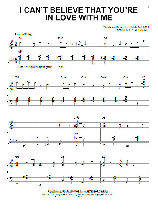 Download or print Jimmy McHugh I Can't Believe That You're In Love With Me (arr. Brent Edstrom) sheet music, chords and digital score arranged for Piano Solo. This Jazz score includes 5 page(s).