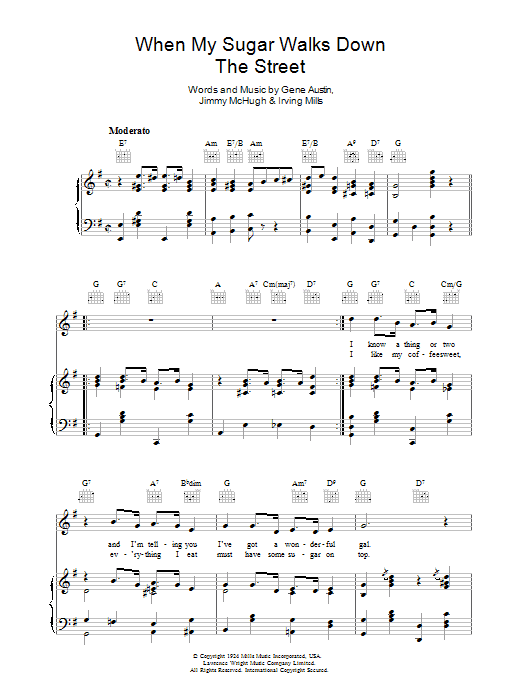 Download or print Jimmy McHugh When My Sugar Walks Down The Street sheet music, chords and digital score arranged for Piano, Vocal & Guitar Chords. This Jazz score includes 4 page(s).