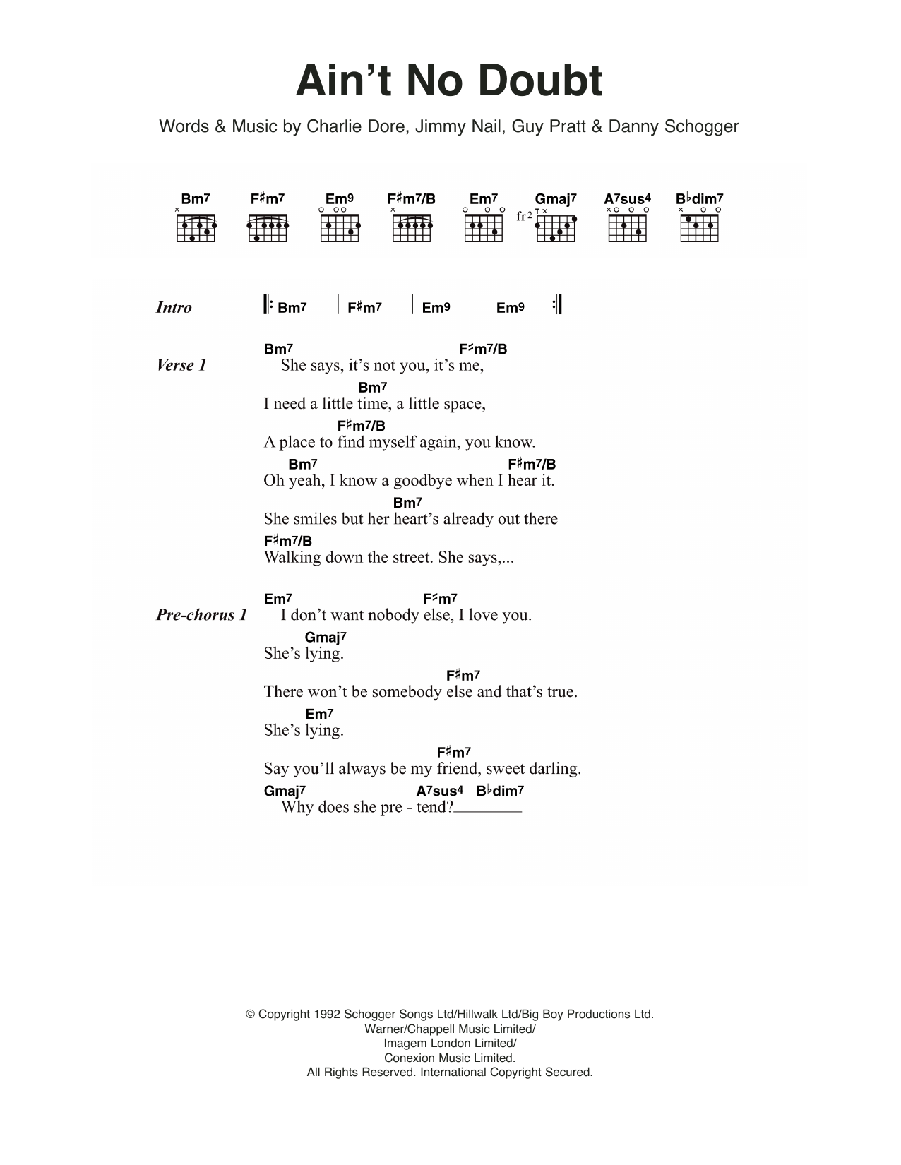Download or print Jimmy Nail Ain't No Doubt sheet music, chords and digital score arranged for Guitar Chords/Lyrics. This Pop score includes 2 page(s).