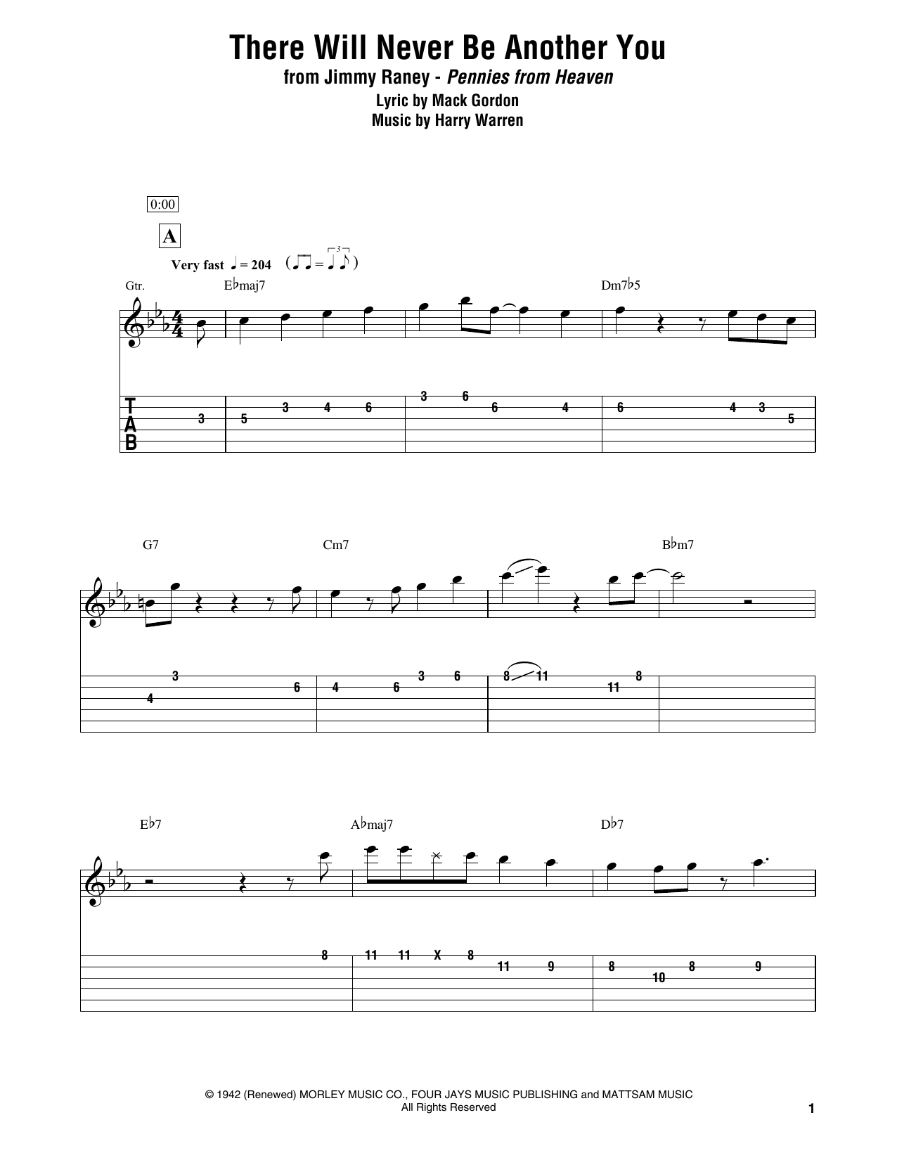 Download or print Jimmy Raney There Will Never Be Another You sheet music, chords and digital score arranged for Electric Guitar Transcription. This Jazz score includes 8 page(s).