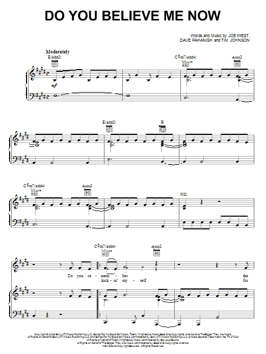 Download or print Jimmy Wayne Do You Believe Me Now sheet music, chords and digital score arranged for Piano, Vocal & Guitar Chords (Right-Hand Melody). This Country score includes 7 page(s).