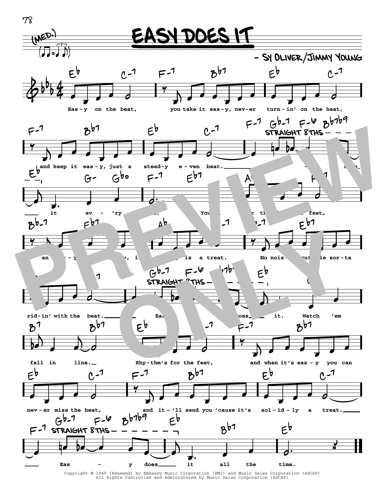 Download or print Jimmy Young Easy Does It (Low Voice) sheet music, chords and digital score arranged for Real Book – Melody, Lyrics & Chords. This Jazz score includes 1 page(s).