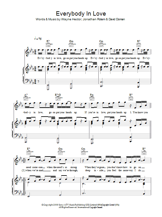 Download or print JLS Everybody In Love sheet music, chords and digital score arranged for Piano, Vocal & Guitar Chords. This Pop score includes 5 page(s).