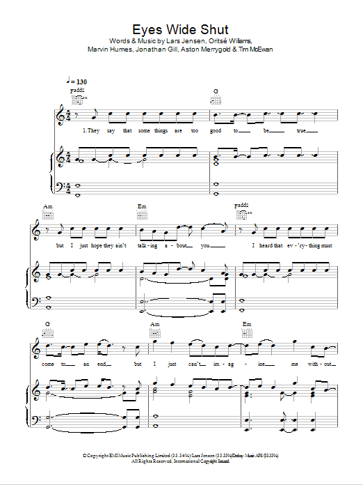 Download or print JLS Eyes Wide Shut sheet music, chords and digital score arranged for Piano, Vocal & Guitar Chords. This Pop score includes 9 page(s).