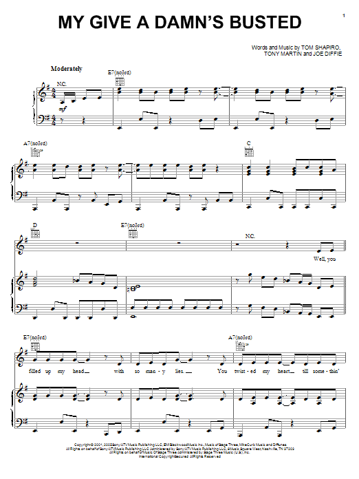 Download or print Jo Dee Messina My Give A Damn's Busted sheet music, chords and digital score arranged for Piano, Vocal & Guitar Chords (Right-Hand Melody). This Country score includes 7 page(s).
