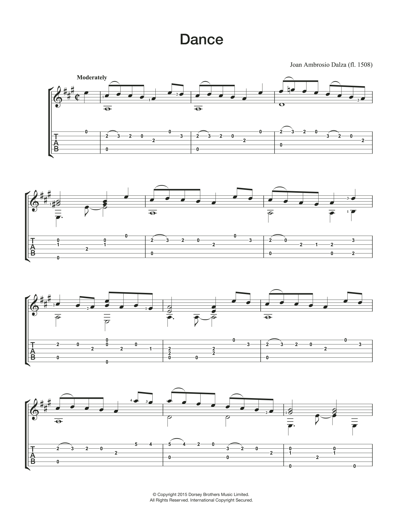 Download or print Joan Ambrosio Dalza Dance sheet music, chords and digital score arranged for Easy Guitar. This Classical score includes 2 page(s).