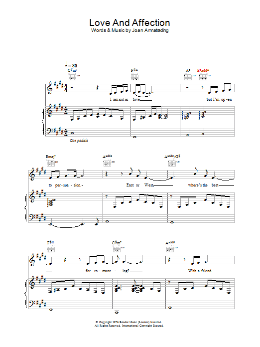 Download or print Joan Armatrading Love And Affection sheet music, chords and digital score arranged for Lead Sheet / Fake Book. This Pop score includes 6 page(s).