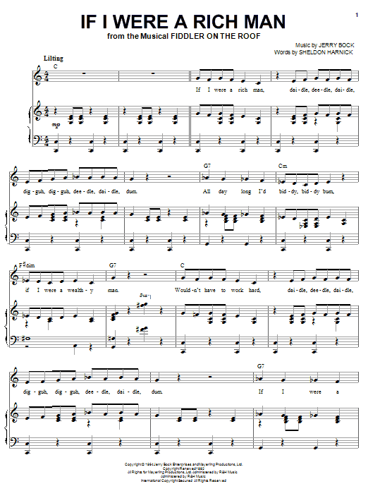 Download or print Joan Frey Boytim If I Were A Rich Man sheet music, chords and digital score arranged for Piano & Vocal. This Musical/Show score includes 5 page(s).
