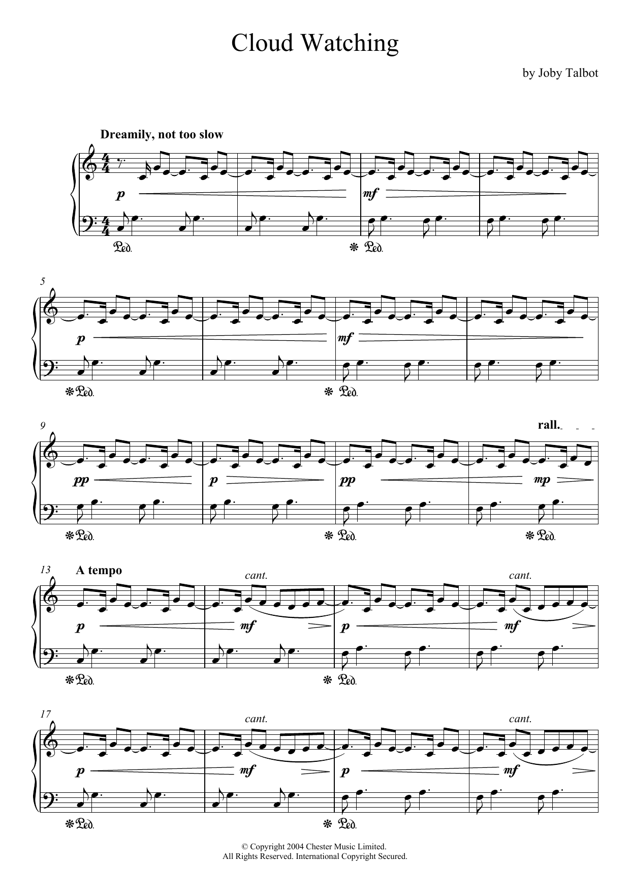 Download or print Joby Talbot Cloud Watching sheet music, chords and digital score arranged for Piano Solo. This Pop score includes 2 page(s).