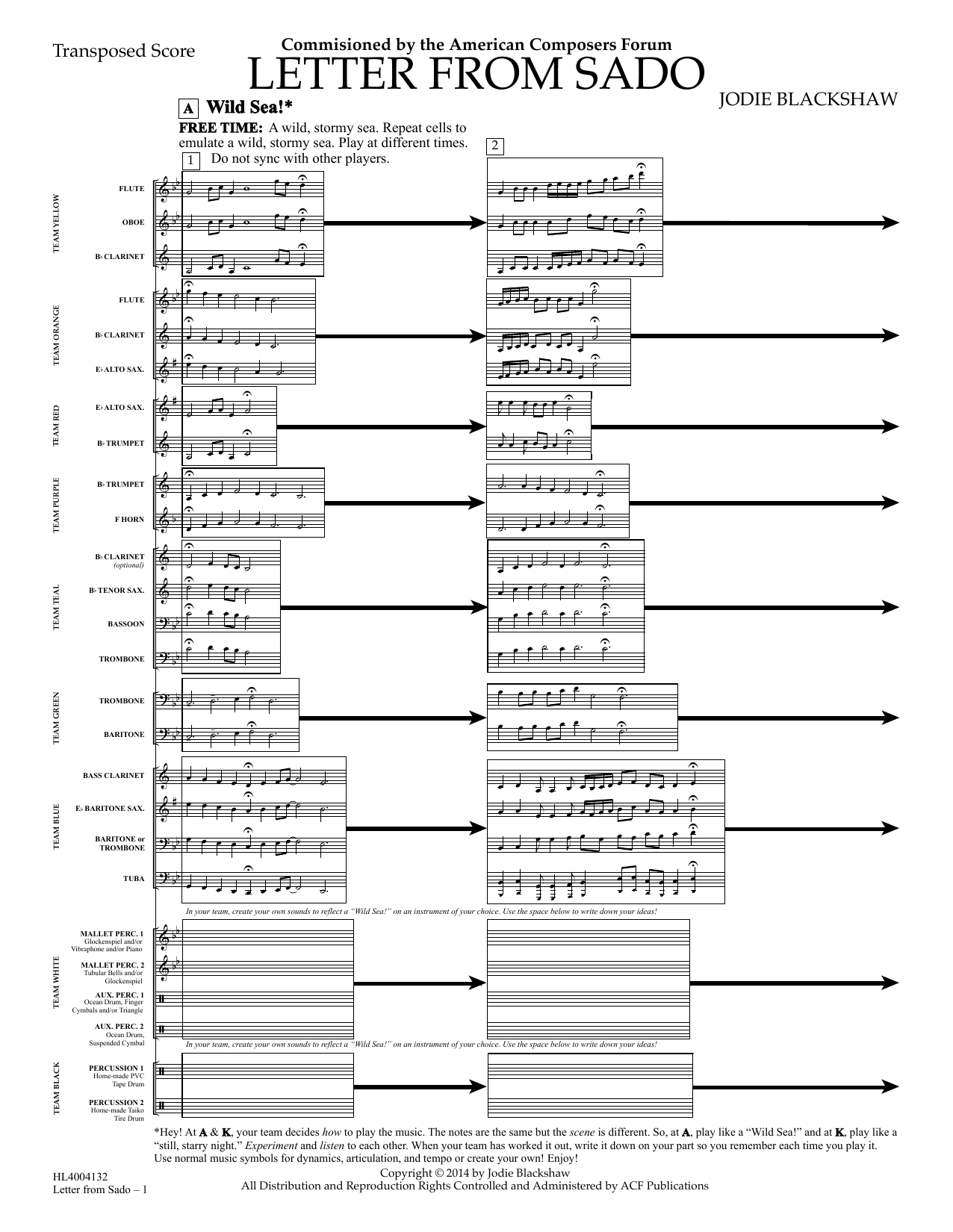 Download or print Jodie Blackshaw Letter from Sado - Full Score sheet music, chords and digital score arranged for Concert Band. This Concert score includes 21 page(s).
