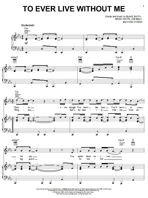 Download or print Jody McBrayer To Ever Live Without Me sheet music, chords and digital score arranged for Piano, Vocal & Guitar Chords (Right-Hand Melody). This Christian score includes 5 page(s).