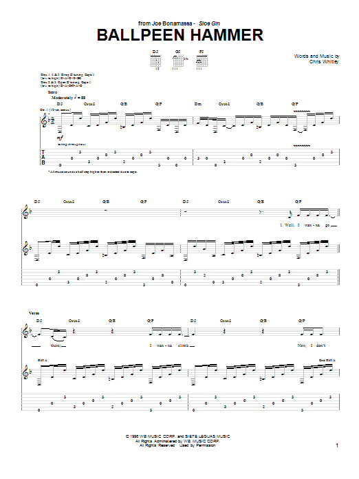 Download or print Joe Bonamassa Ballpeen Hammer sheet music, chords and digital score arranged for Guitar Tab. This Blues score includes 7 page(s).