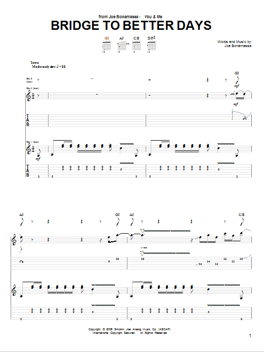 Download or print Joe Bonamassa Bridge To Better Days sheet music, chords and digital score arranged for Guitar Tab. This Blues score includes 18 page(s).