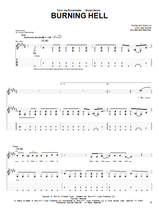 Download or print Joe Bonamassa Burning Hell sheet music, chords and digital score arranged for Guitar Tab. This Blues score includes 19 page(s).