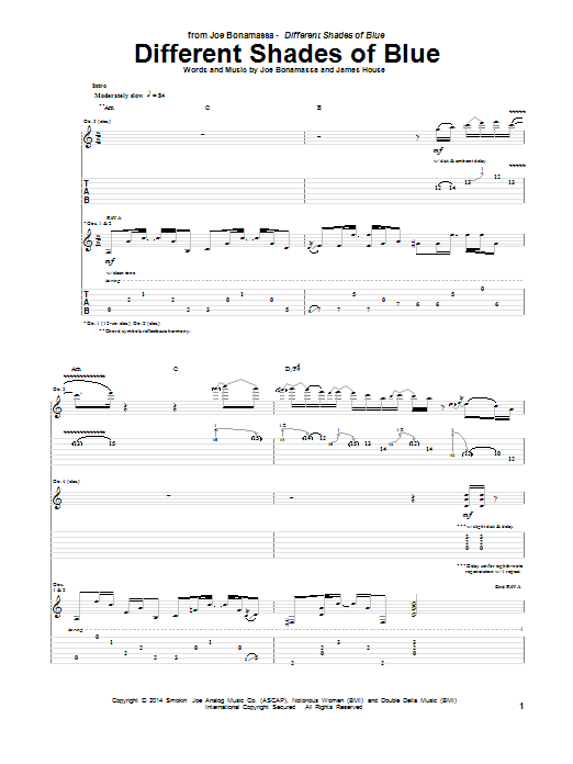 Download or print Joe Bonamassa Different Shades Of Blue sheet music, chords and digital score arranged for Guitar Tab. This Blues score includes 16 page(s).