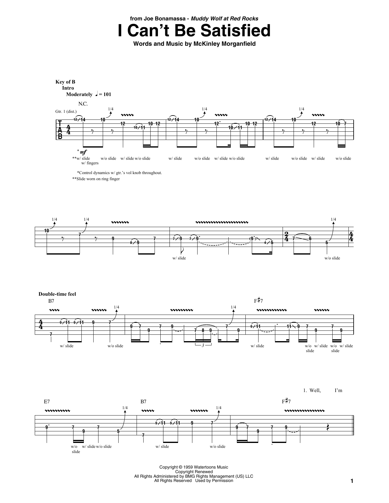 Download or print Joe Bonamassa I Can't Be Satisfied sheet music, chords and digital score arranged for Guitar Rhythm Tab. This Blues score includes 6 page(s).
