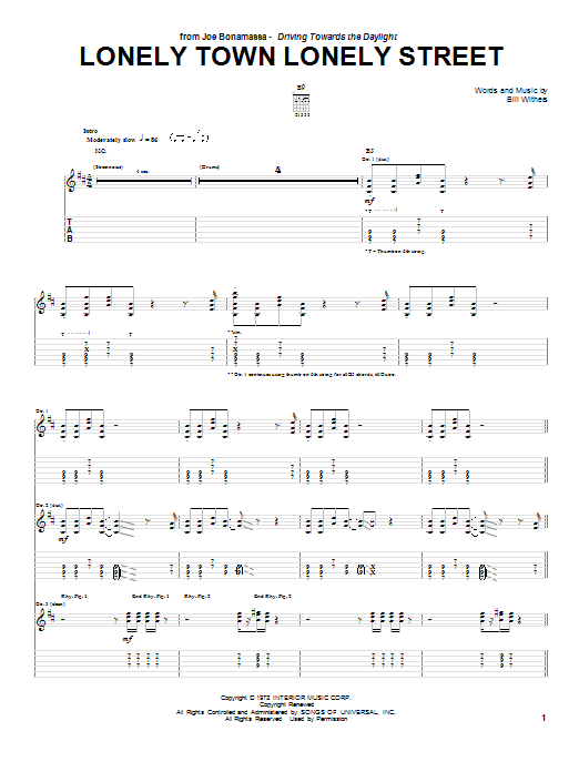 Download or print Joe Bonamassa Lonely Town Lonely Street sheet music, chords and digital score arranged for Guitar Tab. This Blues score includes 16 page(s).