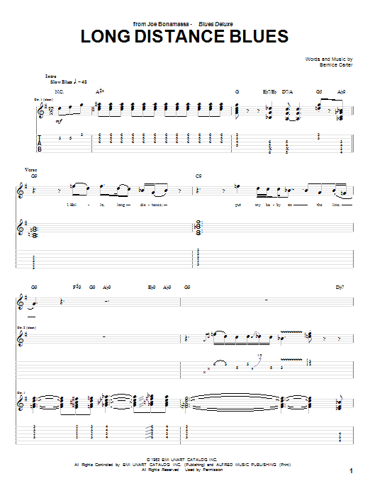 Download or print Joe Bonamassa Long Distance Blues sheet music, chords and digital score arranged for Guitar Tab. This Blues score includes 8 page(s).