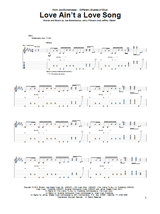 Download or print Joe Bonamassa Love Ain't A Love Song sheet music, chords and digital score arranged for Guitar Tab. This Pop score includes 9 page(s).