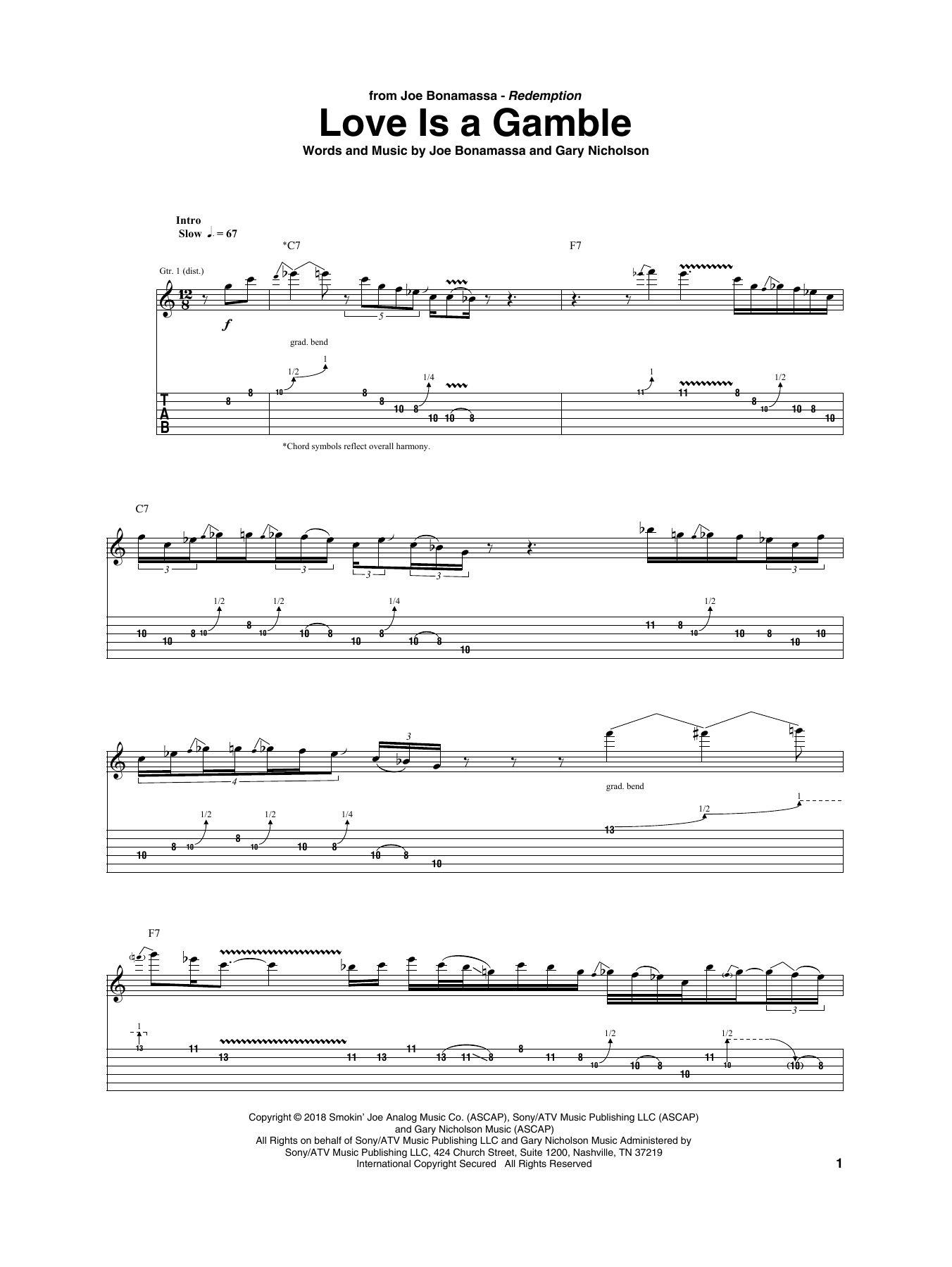 Download or print Joe Bonamassa Love Is A Gamble sheet music, chords and digital score arranged for Guitar Tab. This Pop score includes 11 page(s).