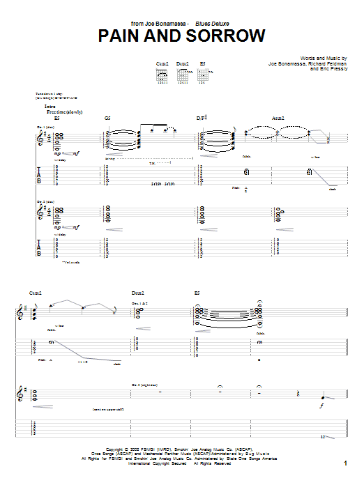 Download or print Joe Bonamassa Pain And Sorrow sheet music, chords and digital score arranged for Guitar Tab. This Blues score includes 28 page(s).