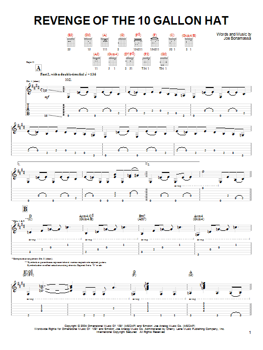 Download or print Joe Bonamassa Revenge Of The 10 Gallon Hat sheet music, chords and digital score arranged for Guitar Tab. This Blues score includes 9 page(s).