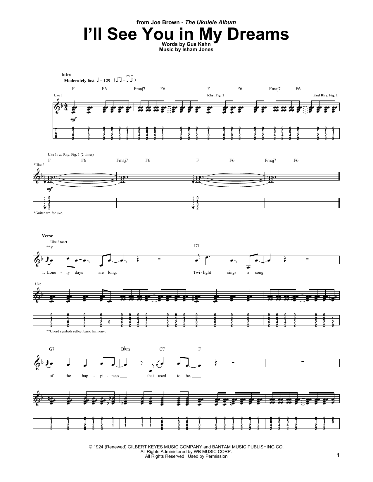 Download or print Joe Brown I'll See You In My Dreams sheet music, chords and digital score arranged for Guitar Chords/Lyrics. This Pop score includes 2 page(s).