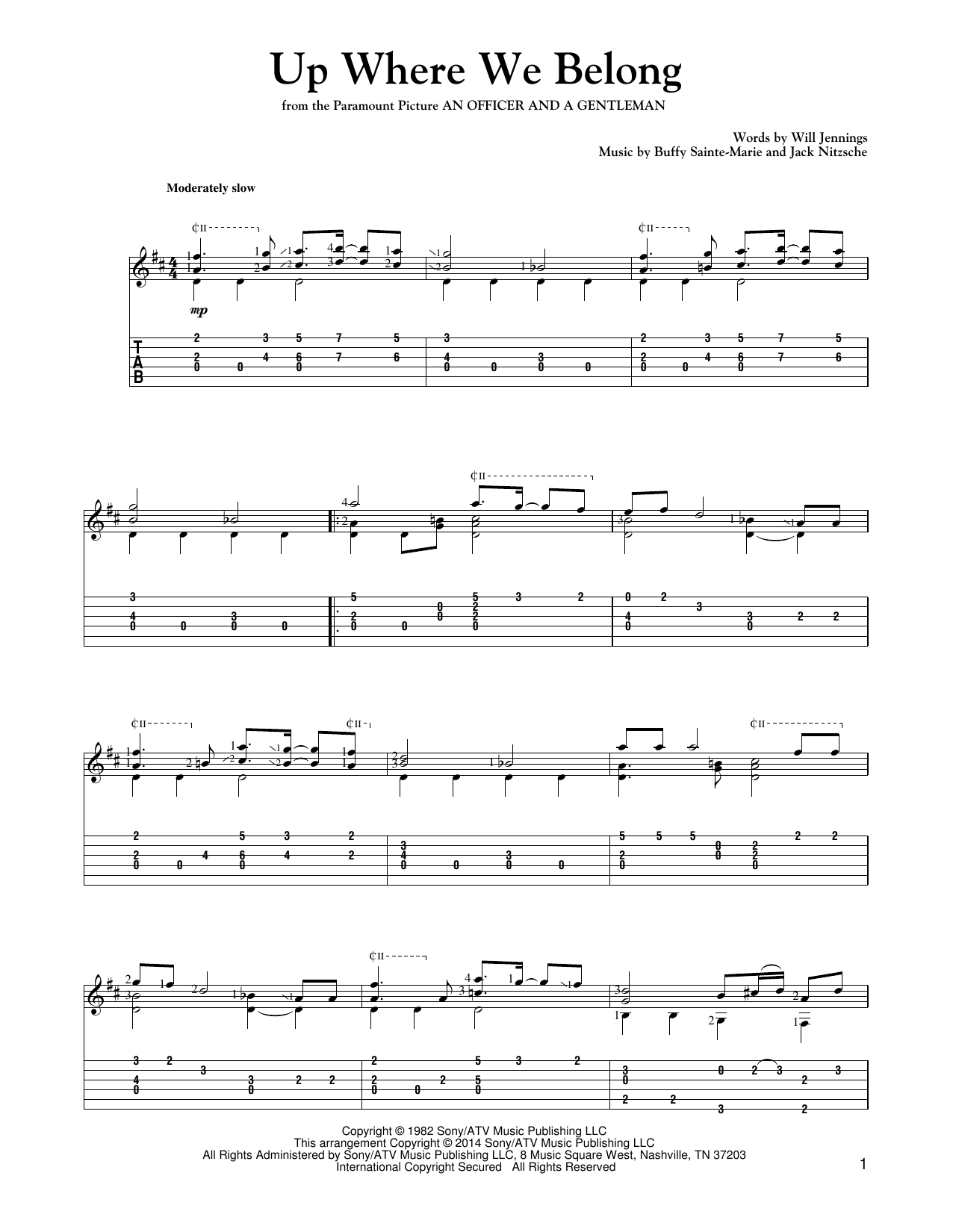 Download or print Mark Phillips Up Where We Belong sheet music, chords and digital score arranged for Solo Guitar. This Love score includes 3 page(s).