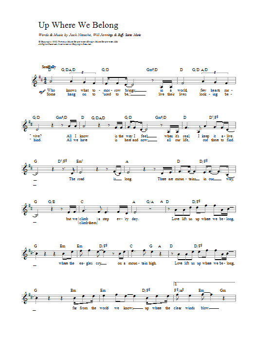Download or print Joe Cocker Up Where We Belong sheet music, chords and digital score arranged for Easy Piano. This Film/TV score includes 4 page(s).