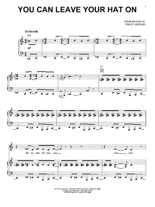 Download or print Joe Cocker You Can Leave Your Hat On sheet music, chords and digital score arranged for Easy Piano. This Pop score includes 5 page(s).