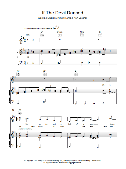 Download or print Joe Diffie If The Devil Danced sheet music, chords and digital score arranged for Piano, Vocal & Guitar Chords. This Country score includes 5 page(s).