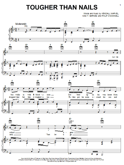 Download or print Joe Diffie Tougher Than Nails sheet music, chords and digital score arranged for Piano, Vocal & Guitar Chords (Right-Hand Melody). This Country score includes 4 page(s).