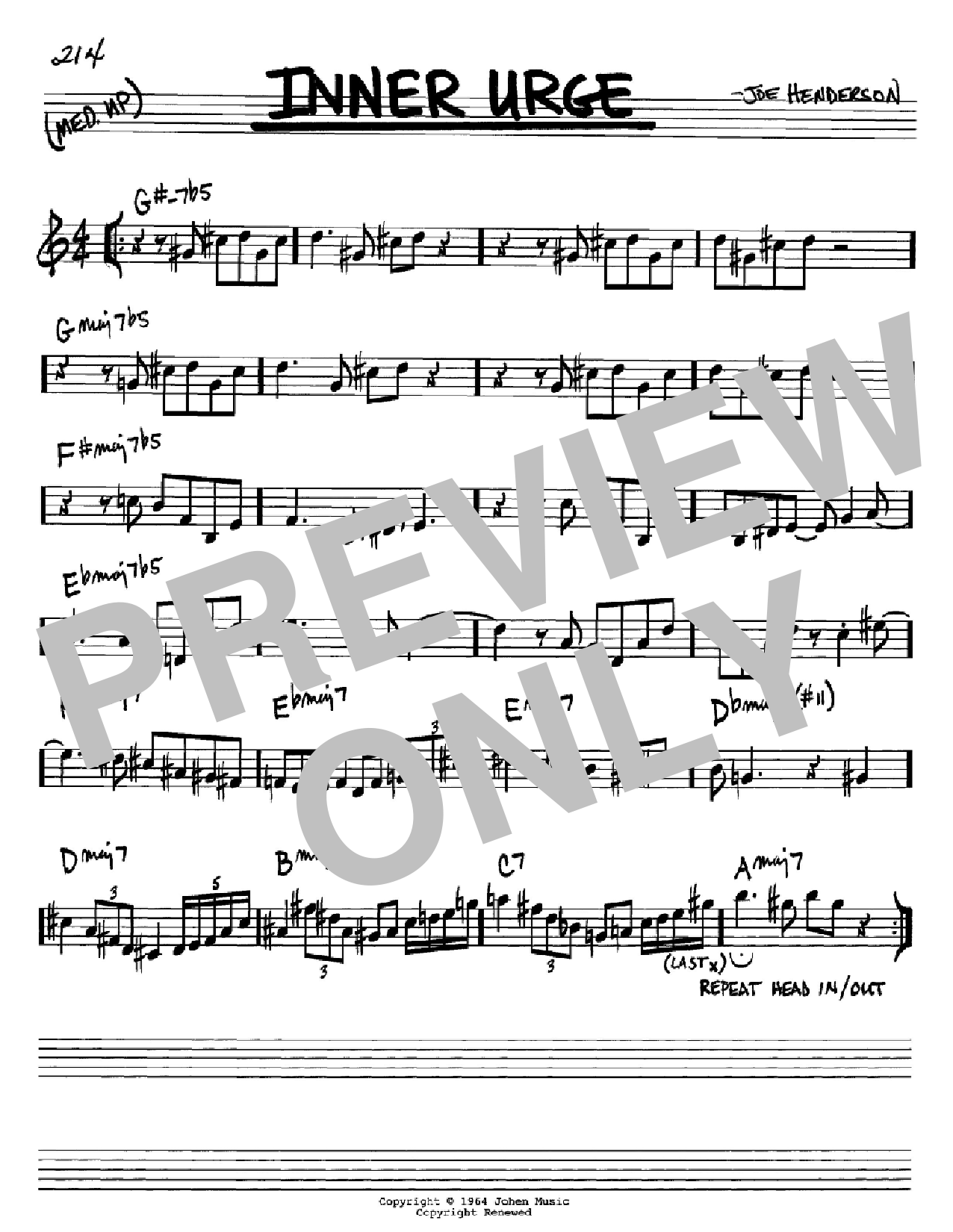 Download or print Joe Henderson Inner Urge sheet music, chords and digital score arranged for Real Book – Melody & Chords – C Instruments. This Jazz score includes 1 page(s).